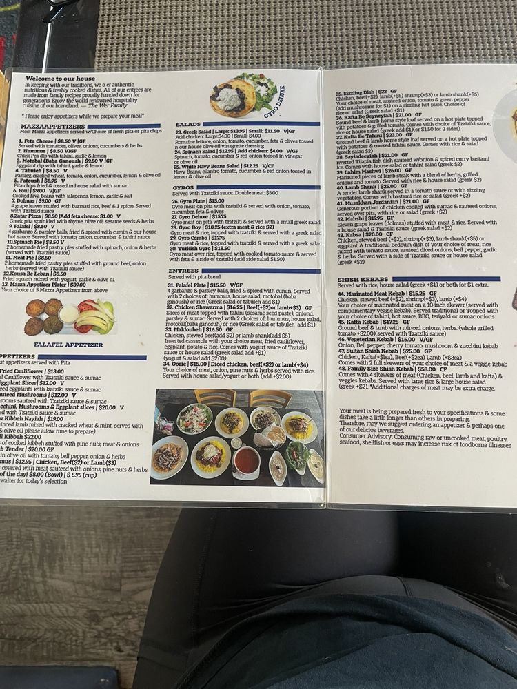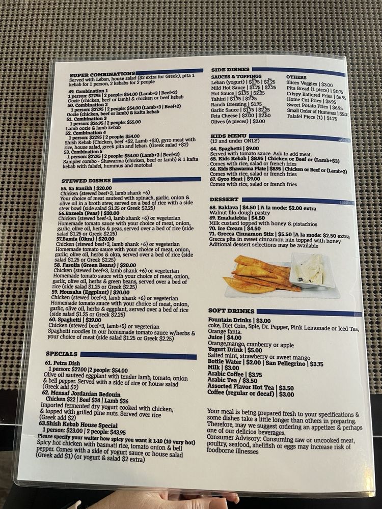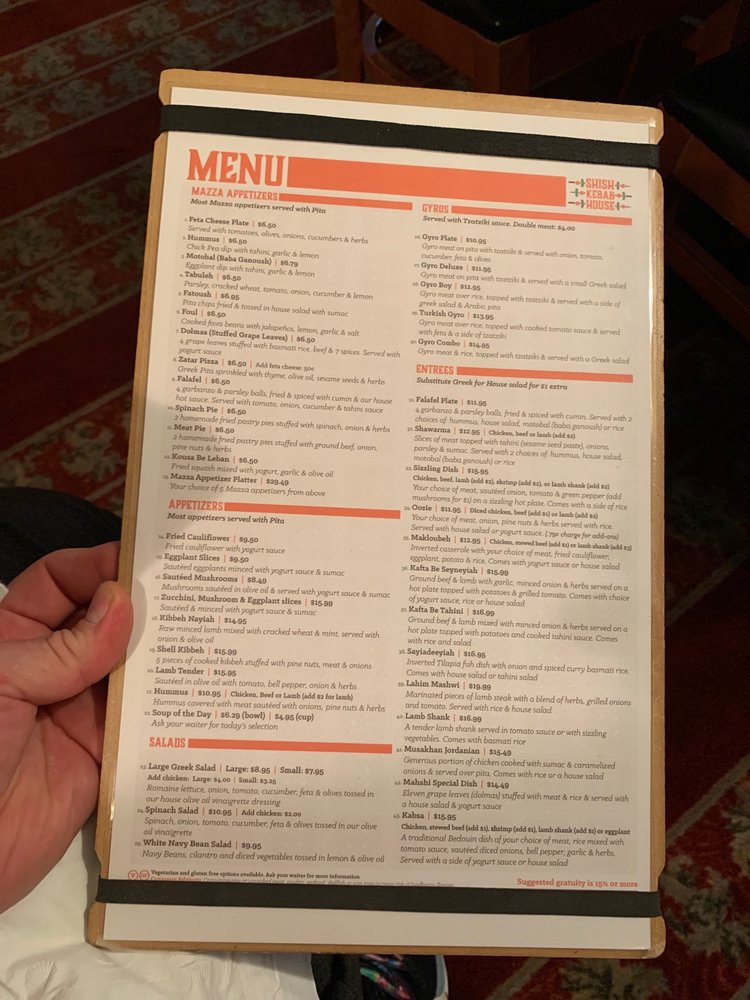 Introducing the menu at Shish Kebab House of Tucson, a Middle Eastern-Mediterranean restaurant offering a range of flavorful dishes. From appetizers like traditional hummus and grape leaves to main courses like Lamb Tender and Chicken Spinach Salad, each item showcases authentic ingredients and bold flavors. The menu also includes a variety of refreshing beverages, such as Arabic Coffee and Yogurt Drink. Customers rave about the quick service, friendly staff, and tasty dishes, like the Chicken Shawarma and House-made Dolmas. The cozy ambiance, occasional belly dancing shows, and consistent quality make this spot a favorite among locals. Whether you're looking for a quick takeout option or a place to enjoy a leisurely meal with friends and family, Shish Kebab House of Tucson delivers a satisfying Middle Eastern dining experience.
