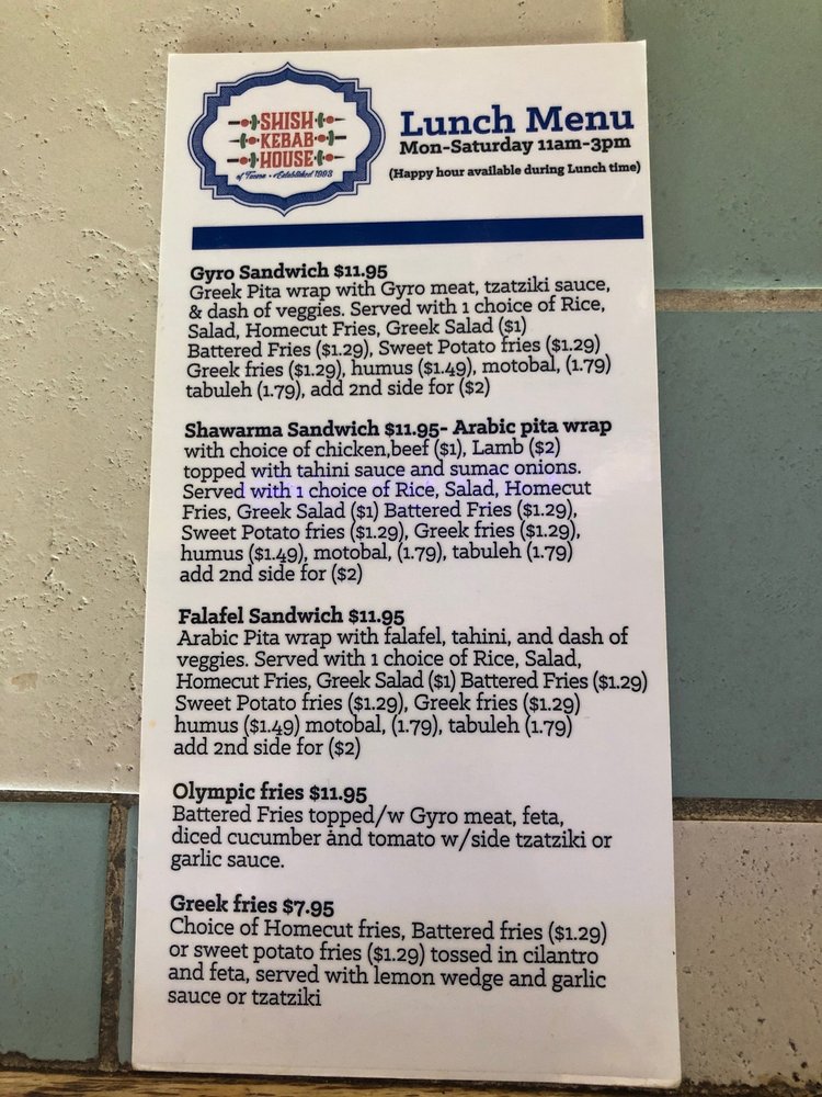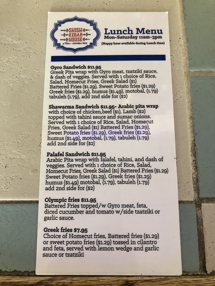 Shish Kebab House of Tucson Menu (Update 2025)